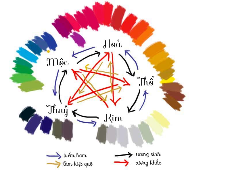 Ta có thể sử dụng màu sắc, hình thể hoặc chất liệu tương quan với mỗi Hành để duy trì sự cân bằng của môi trường.