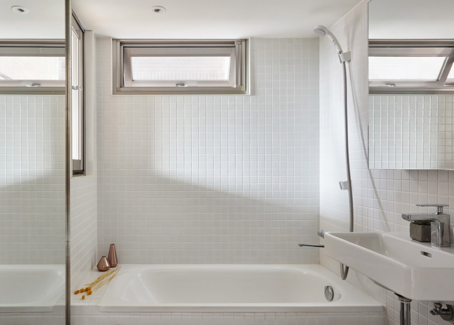 Do đó, phòng tắm được thiết kế ưu tiên để có thể bố trí được đầy đủ tiện nghi, thay vì vòi hoa sen truyền thống thì đó là một bồn tắm nước nóng. Để làm được điều đó nhóm thiết kế đã chuyển máy giặt vào khu vực nhà bếp, bố trí âm tủ nên không gian này vẫn gọn gàng mà đầy đủ chức năng sử dụng.