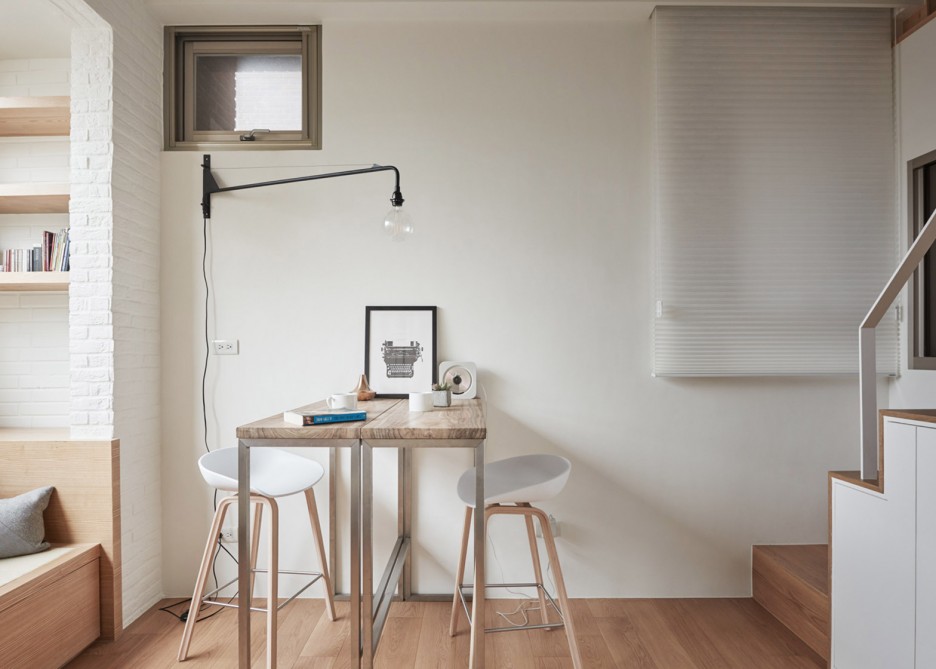 Ở những thành phố mà giá nhà ở đắt đỏ như Đài Bắc, thì những căn hộ với diện tích nhỏ đang được giới trẻ hướng đến. Một không gian sống nhỏ gọn, đầy đủ tiện nghi, với tủ kệ để đồ kéo dài từ trần đến sàn, trang bị cả bồn tắm, và còn có cả không gian để tập thể dục.